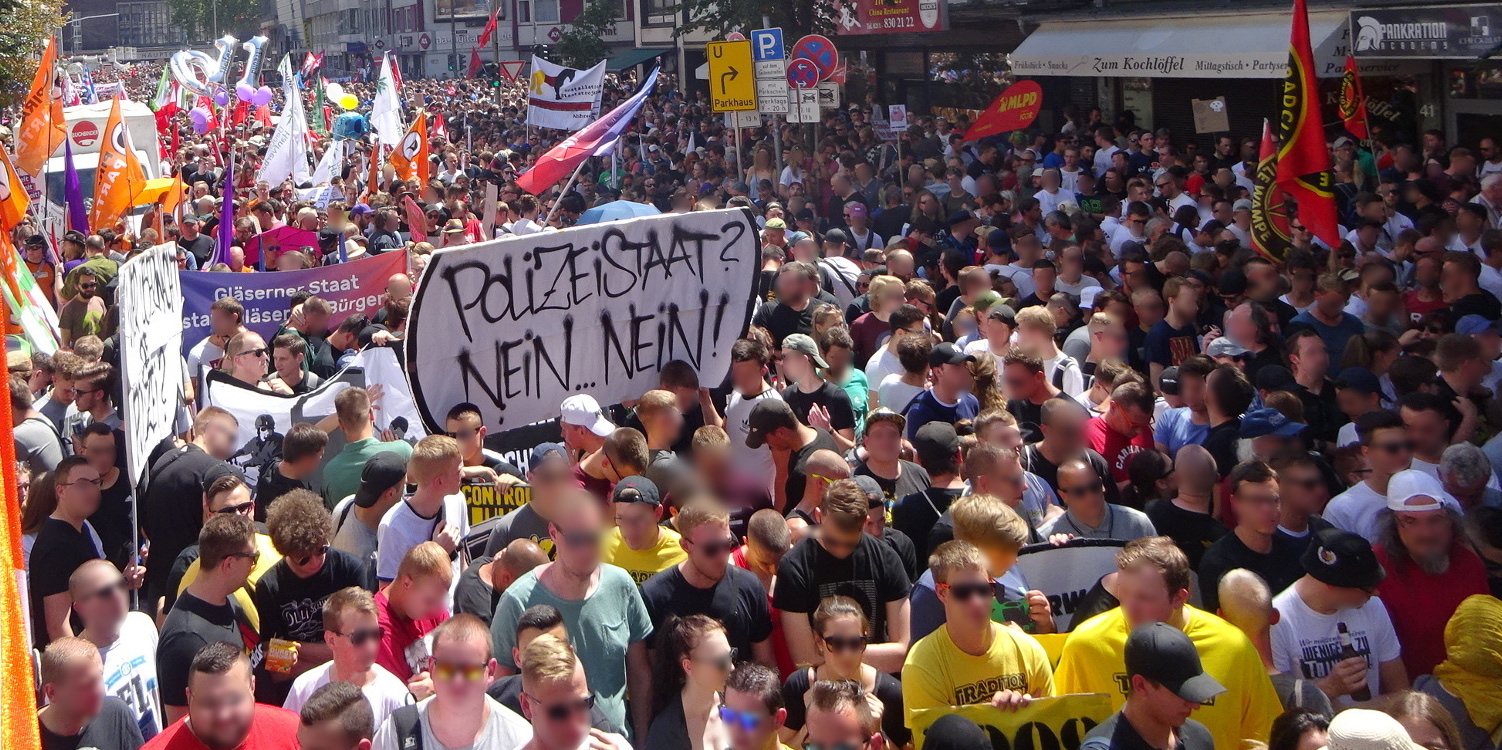 In der Auseinandersetzung um die neuen Polizeigesetze ist diese politische Gegenwehr erstmals seit langem nicht mehr auf die „üblichen Verdächtigen“ aus den Bürgerrechtsorganisationen und den jeweiligen Oppositionsparteien beschränkt. 40.000 Leute demonstrierten am 10. Mai 2018 gegen das bayerische Polizeiaufgabengesetz, 20.000 gingen am 7. Juli 2018 gegen das nordrhein-westfälische Polizeigesetz auf die Straße. Weitere Demonstrationen sind auch in anderen Bundesländern angekündigt. (↑ nach oben)