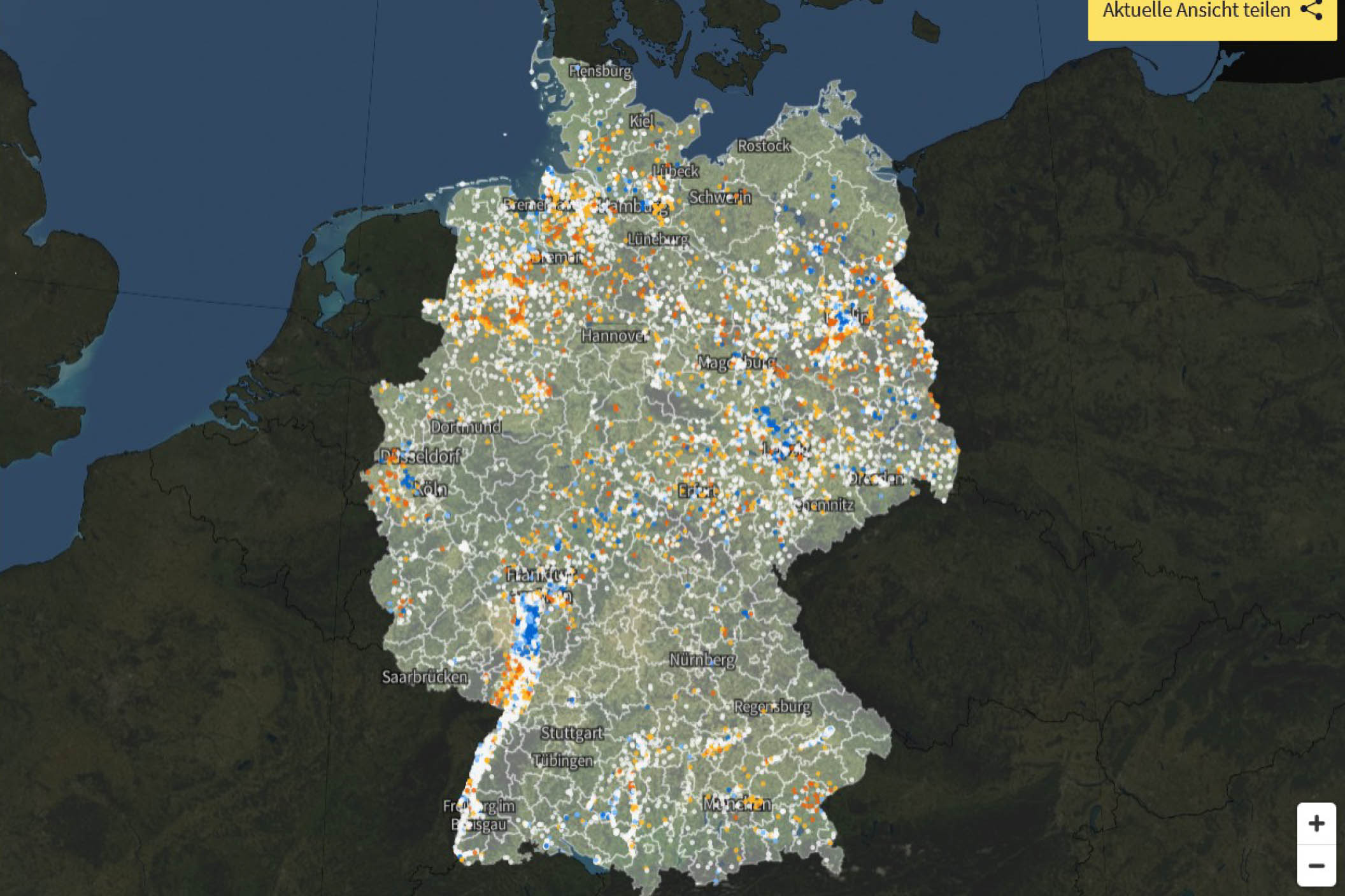 Eine stets aktuelle Übersicht über die Trockenheit in unseren Böden bietet der Dürremonitor der Helmholtz-Klimainitiative.