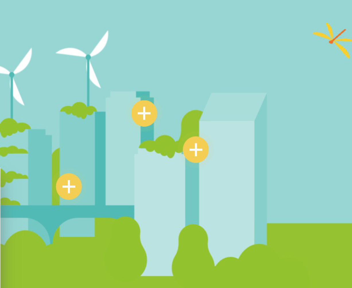 - Grüne Stadt: mehr Grün in der Stadt etablieren (Dach- und Fassadenbegrünung, Bäume, Gehölze)