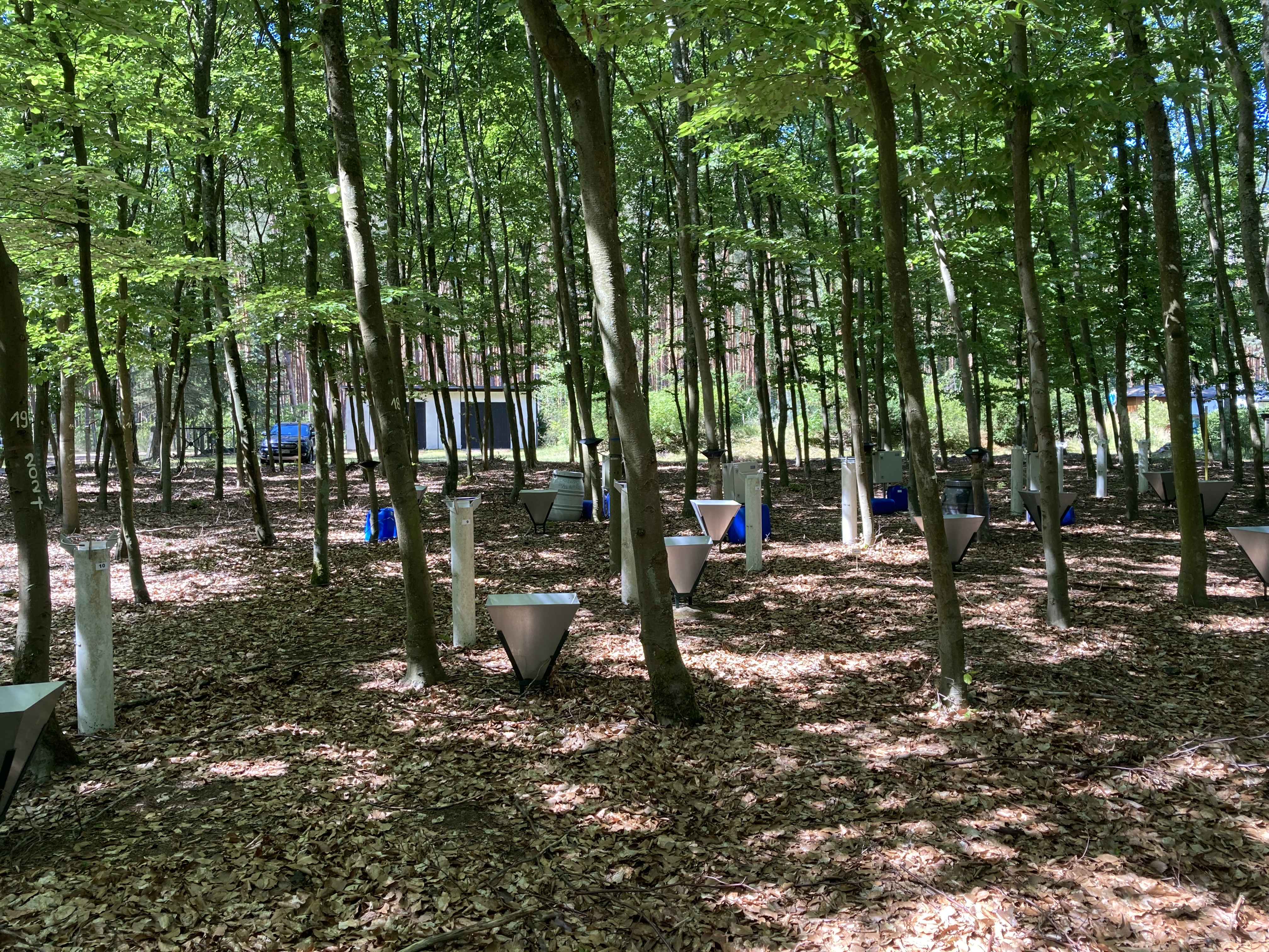 Grit Ebert: Diese Forschungsfläche ist ja vor allem dazu da zu schauen, welchen Einfluss die Baumarten auf die Neubildung von Grundwasser haben, also wie viel Wasser sie versickern lassen und wie viel Wasser direkt über die Blatt- bzw. Borkenfläche wieder abgeht. Kannst Du uns kurz erläutern, auf was für Unterschiede ihr da gestoßen seid bei den einzelnen Baumarten?