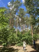 Rundgang auf dem Forschungsgelände in Britz. Zu sehen sind Kiefern mit einem Unterbewuchs aus Eichen.